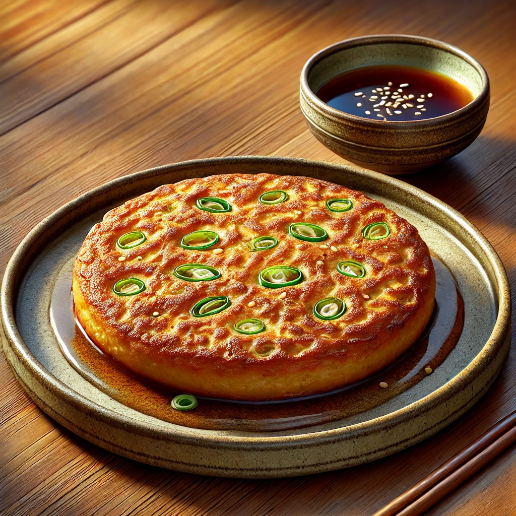8. 완성 후 플레이팅: 노릇하게 구운 파전을 접시에 담고 양념장과 함께 제공합니다.