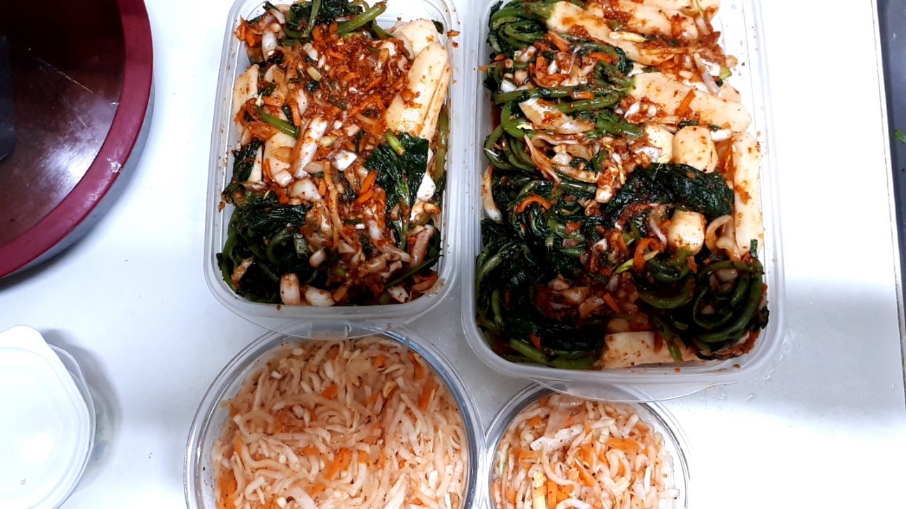 - 🏺 양념이 골고루 묻으면 김치통이나 용기에 차곡차곡 담습니다.